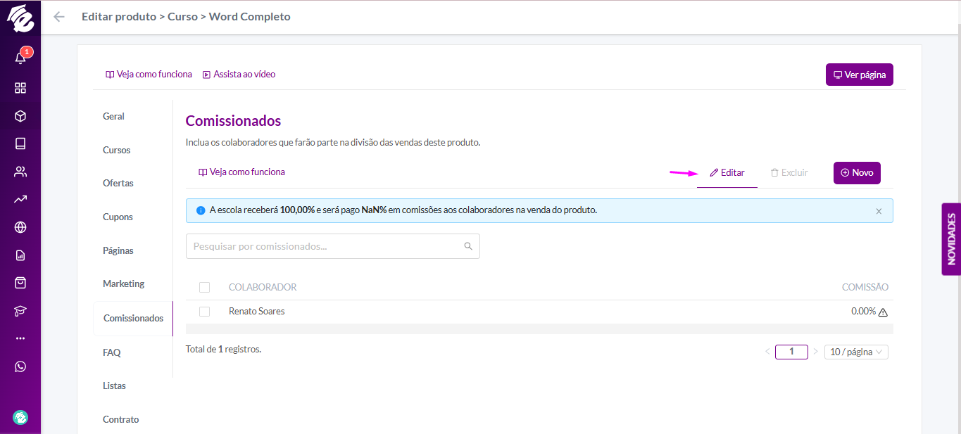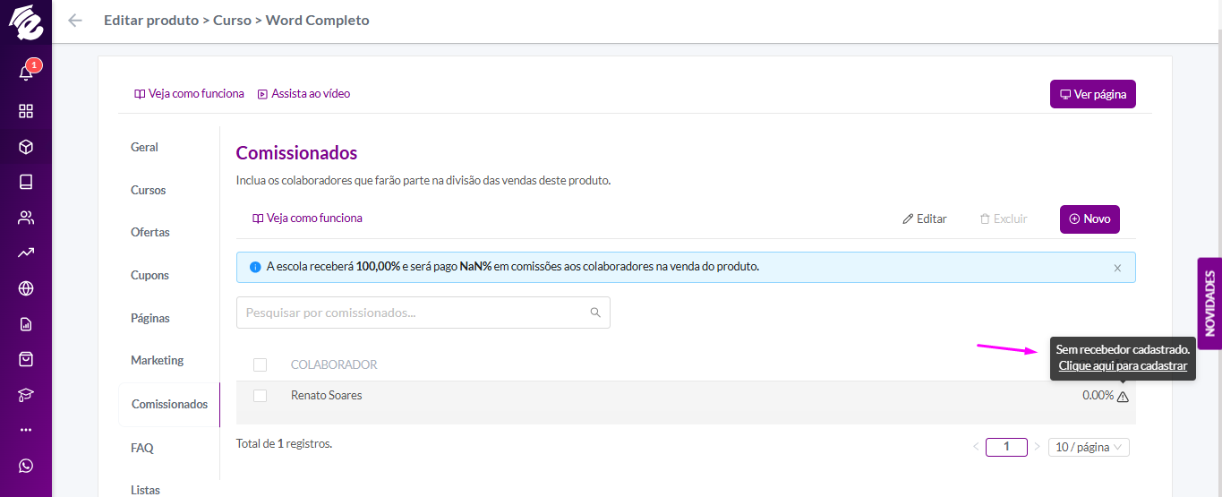 Feito isso, com essa configuração o seu colaborador será comissionado da maneira correta através da plataforma.