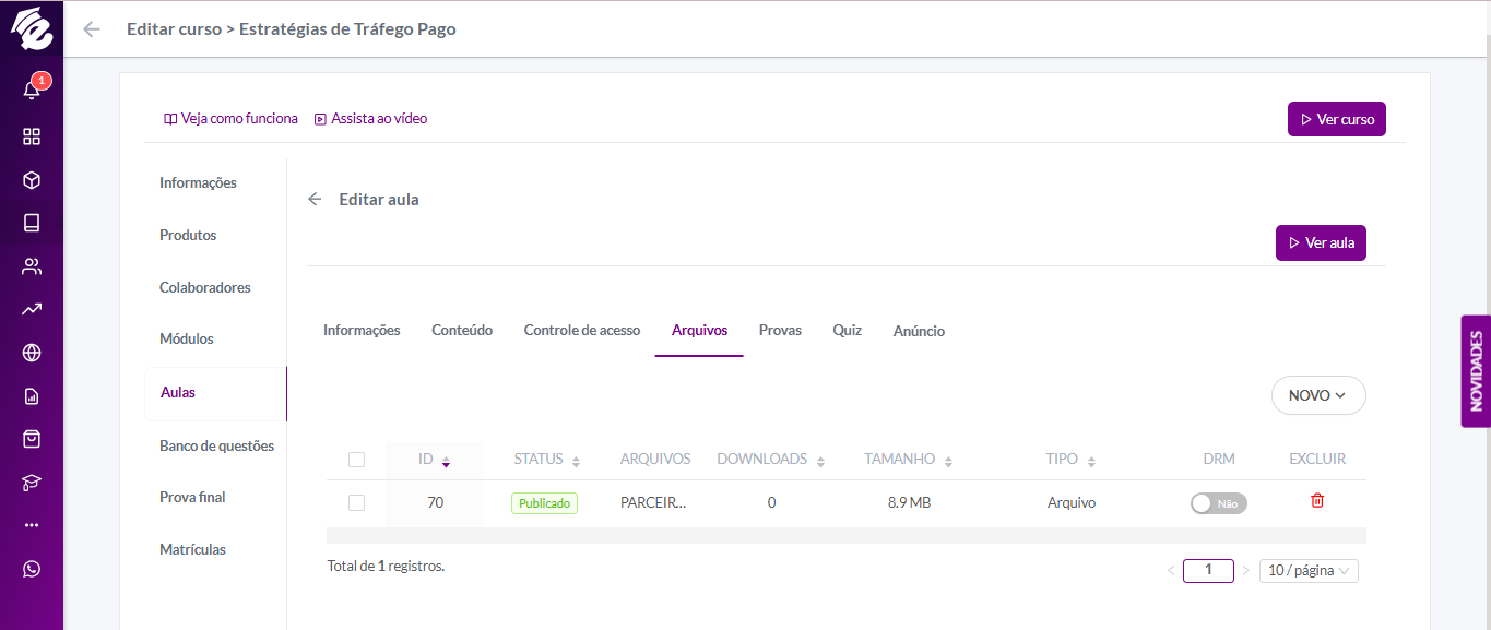 Veja nessa seção como cadastrar arquivos para download dentro de suas aulas.