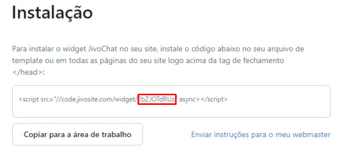 8- Avance a tela final, que contém o script do Jivo Chat. Copie ele para usar na plataforma: