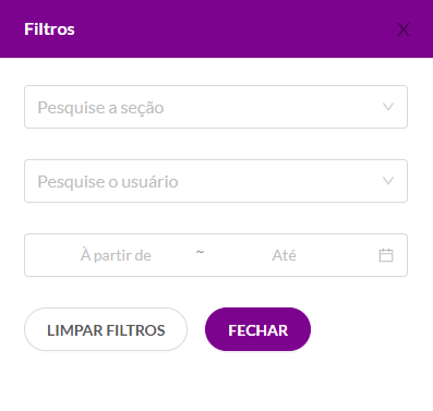 Utilize o botão 'Mais Filtros!'Todas as listagens possuem essa opção para facilitar sua busca. Uma janela com mais filtros da seção será aberta.