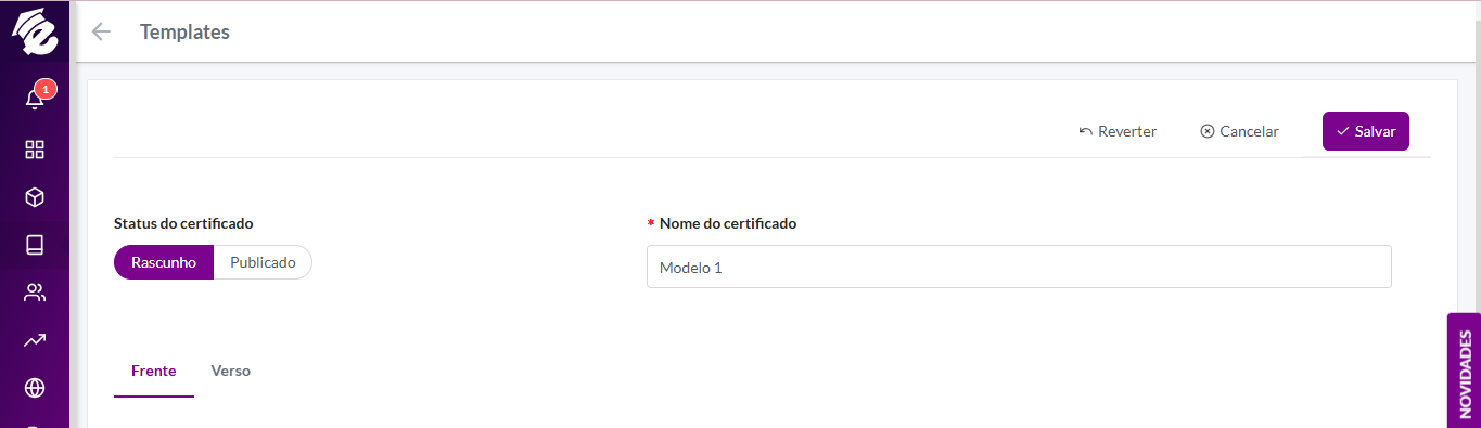 Reverter: Reseta as últimas alterações feitas no certificado;