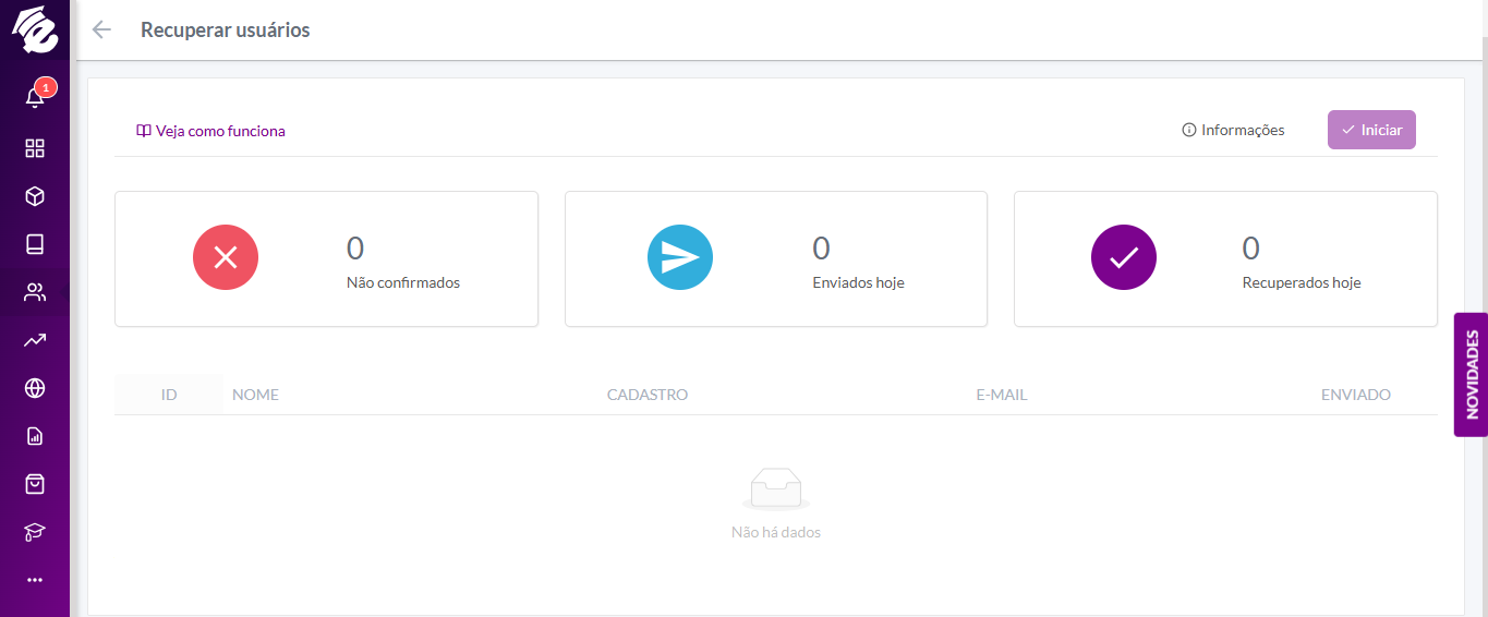 Utilizada para reenviar o e-mail de confirmação de cadastro para os usuários que não confirmaram na primeira vez. Use com moderação, recomendado 1 vez por semana pois realiza o disparo automático dos e-mails para todos os usuários não confirmados;